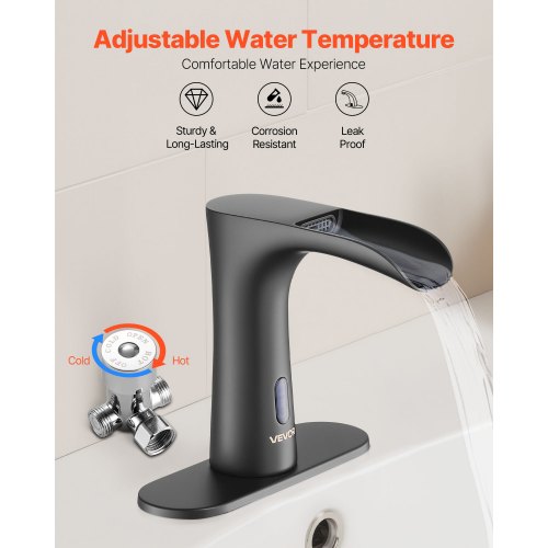 Beröringsfri badrumsblandare, automatisk rörelsesensor vattenfall toalettblandare med hål täckplatta, modern elektronisk sensor varm/kallt vatten för 9,5 mm rör kommersiell, mattsvart | EU