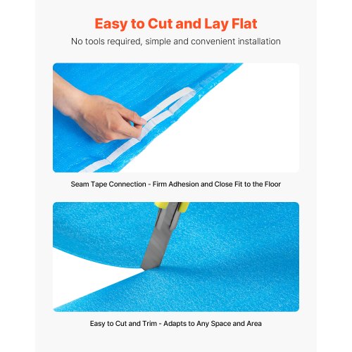 Einfache Installation: Ausgestattet mit Klebeband an den Nähten für einen sicheren und nahtlosen Sitz. Die Bodenunterlage lässt sich leicht zuschneiden und kürzen und passt in jeden Raum oder Bereich ohne professionelle Werkzeuge, was die Installation schnell und bequem macht.