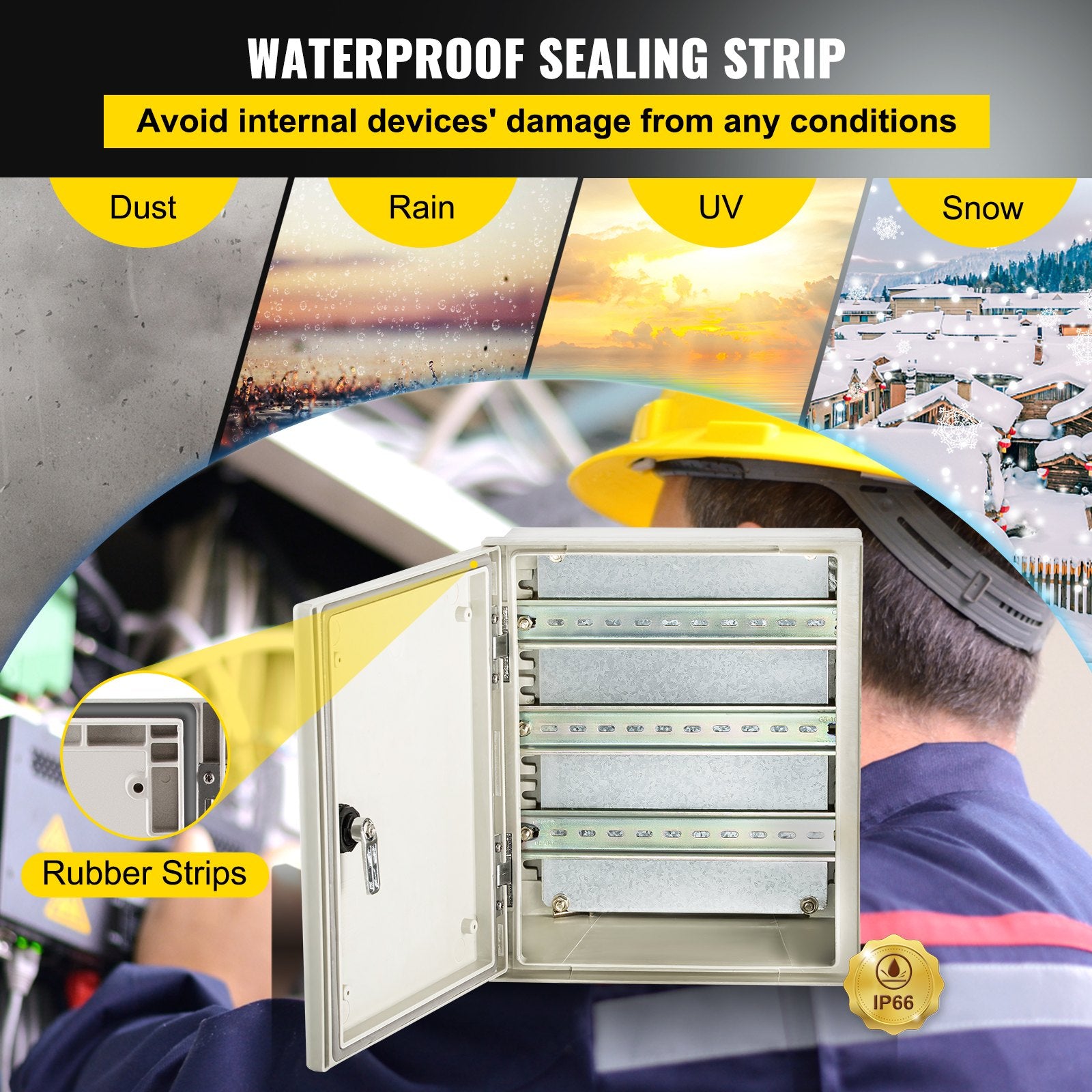 Wasserdicht nach IP66: Der Dichtungsstreifen bietet eine hervorragende Dichtleistung, und das Glasfasergehäuse gewährleistet optimale Schutzart IP66 und verhindert, dass Schmutz und Wasser beim Öffnen des Deckels in die Box eindringen. Halten Sie alle Ihre Schaltkreise in Ordnung.