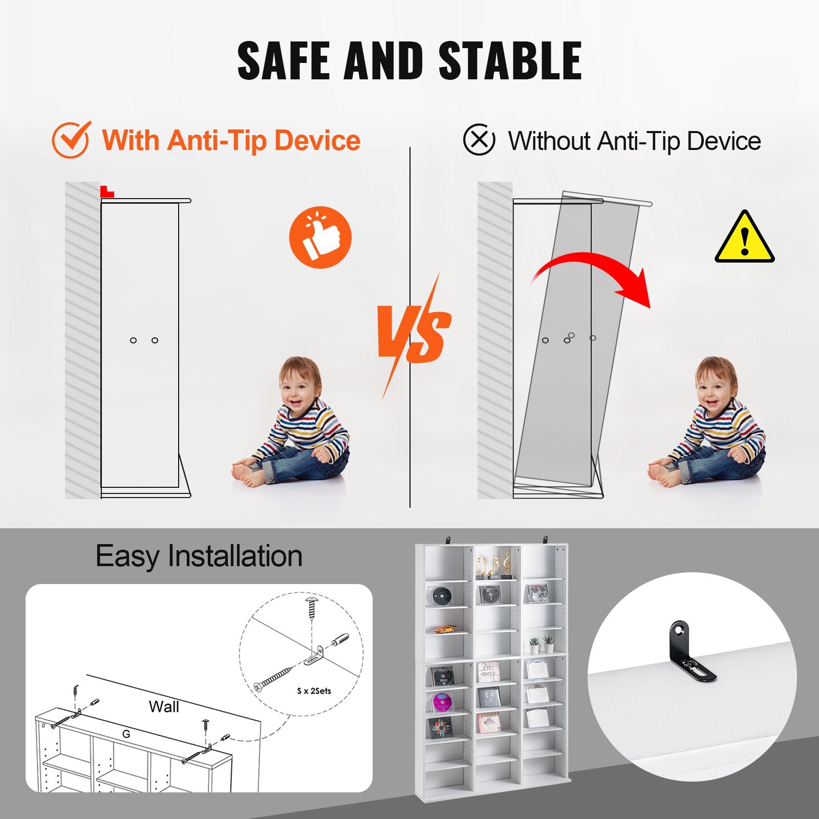 Stabiles Design: Unser DVD-Regal ist mit einem verbreiterten Boden für zusätzliche Stabilität ausgestattet und verhindert ein Umkippen. Das Anti-Kipp-Design schützt vor versehentlichen Stößen und sorgt dafür, dass Ihre Sammlung im täglichen Gebrauch sicher bleibt.