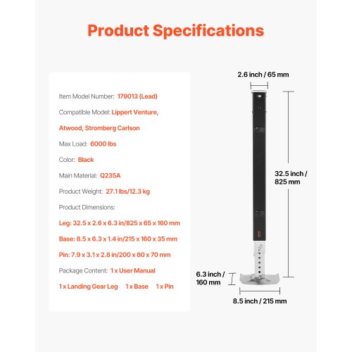 Kompatible Modelle: Unser Ersatz-Fahrwerksbein für Wohnmobile ist für Wohnmobile mit Sattelkupplung konzipiert. Es passt zu Stromberg Carlson-Fahrwerkssätzen (LG-1, LG-3 oder LG-183708) und ist mit Lippert Venture- und Atwood-Fahrwerkssystemen kompatibel.