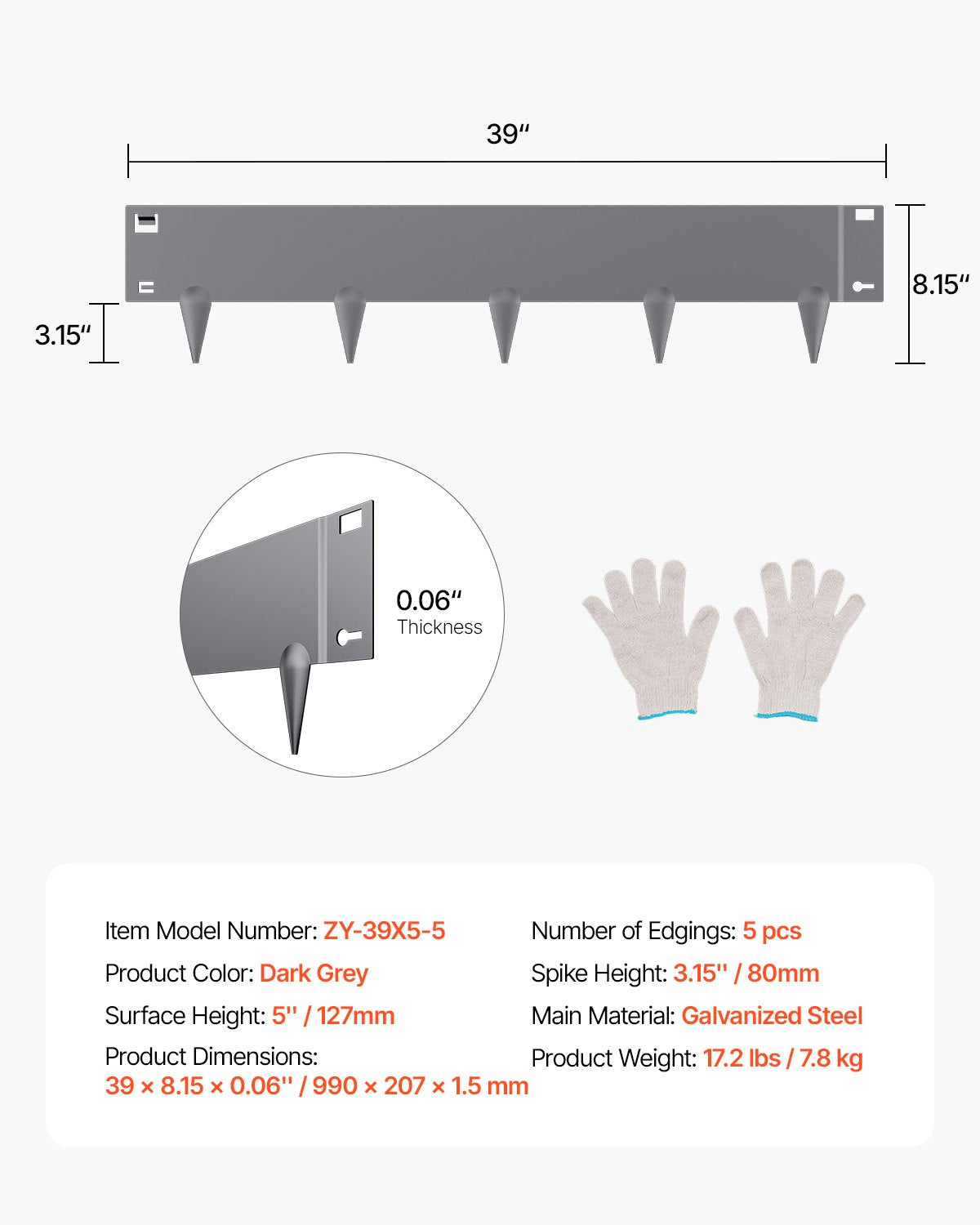 Stahl-Landschaftseinfassung, 5er-Pack, 99,1 x 12,7 cm, rostbeständig, für den Garten, dunkelgrau