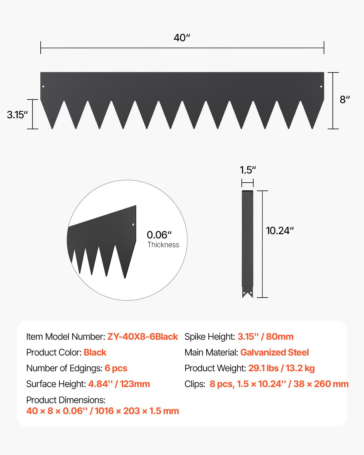 Stahl-Landschaftseinfassung, 6er-Pack, 101,6 x 20,3 cm, rostbeständig, für den Garten, Schwarz