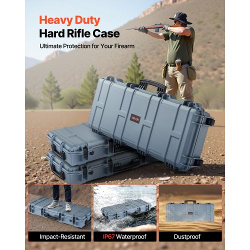 IP67 Vattentät och dammtät: Detta hårda gevärsfodral har en robust, slagtålig yta med IP67 vattentät och dammtät skydd, vilket garanterar en helt förseglad design som håller vatten ute. Det skyddar dina skjutvapen mot hårda väderförhållanden.