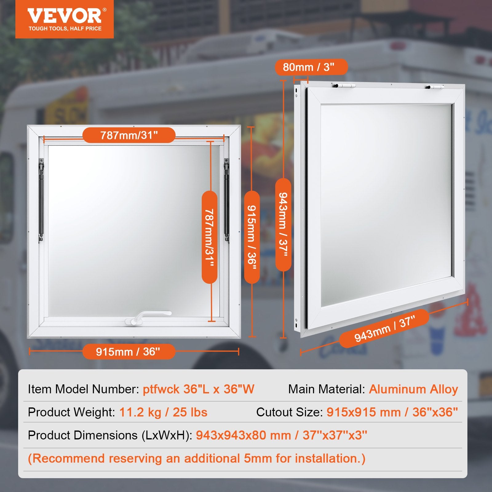 Präzises Öffnen: Das multifunktionale Konzessionsfenster (L x B: 91 x 91 cm) ist ästhetisch ansprechend und praktisch, mit präzisen Abmessungen und lässt sich leicht verarbeiten, montieren und demontieren. Es ist in verschiedenen Größen erhältlich und wird häufig in Foodtrucks, Imbissständen, Imbisswagen, Grillanhängern, mobilen Imbissständen usw. eingesetzt und eignet sich perfekt für die Teilnahme an Food-Festivals.