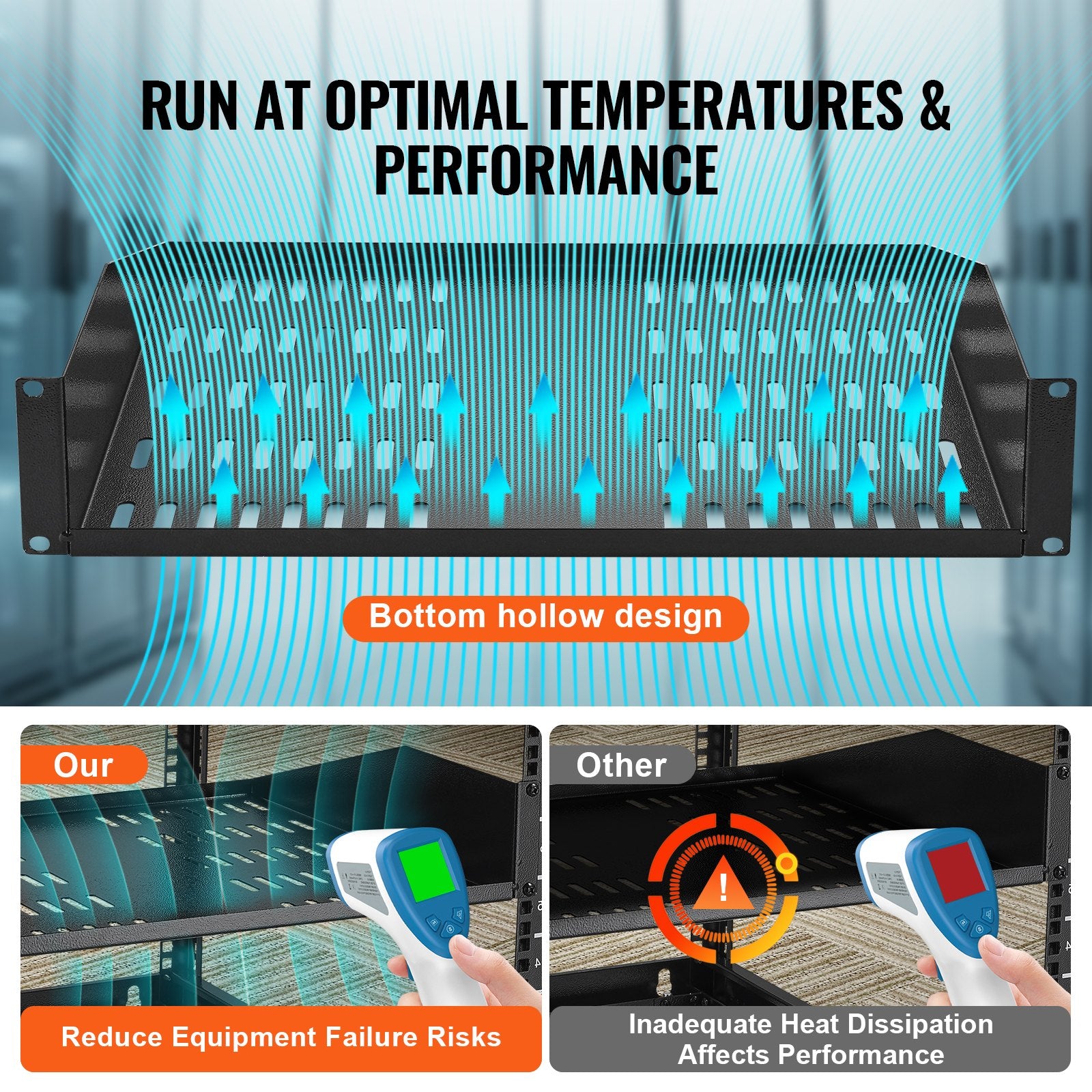 2U-Server-Rack-Regal, 16"/406 mm tief, belüftetes Rack-Montage-Regal mit Ablage