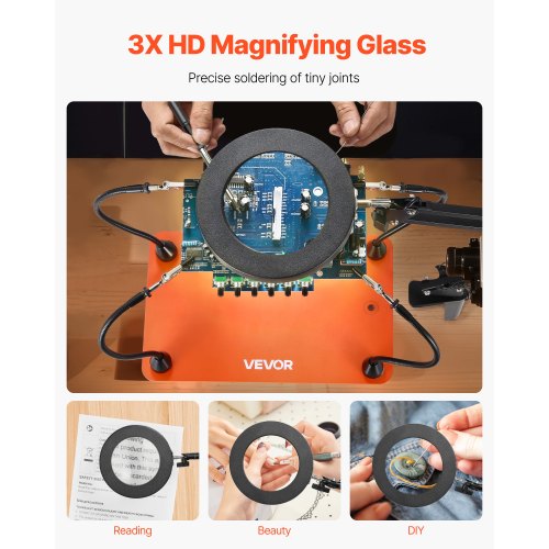Verbesserte 2-in-1-Lötstation für helfende Hände: Sie verfügt über eine 3-fach vergrößernde Lampe für klare und präzise Detailarbeiten und ist daher für Arbeiten im Nahbereich geeignet.
