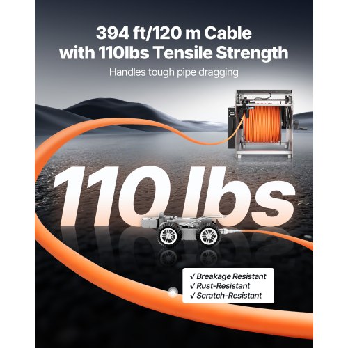 Einfaches Kabelmanagement: Unser Klempner verfügt über ein 120 m langes Kabel mit einer Zugfestigkeit von 50 kg, ist bruchfest und rostbeständig. Es verfügt über eine Ganzmetallwinde mit automatischer Kabelfreigabe und manueller Aufwicklung, um Verwicklungen zu vermeiden, sowie einen Entfernungszähler, um die Kabellänge in Echtzeit auf dem Touchscreen des Tablets zu verfolgen.