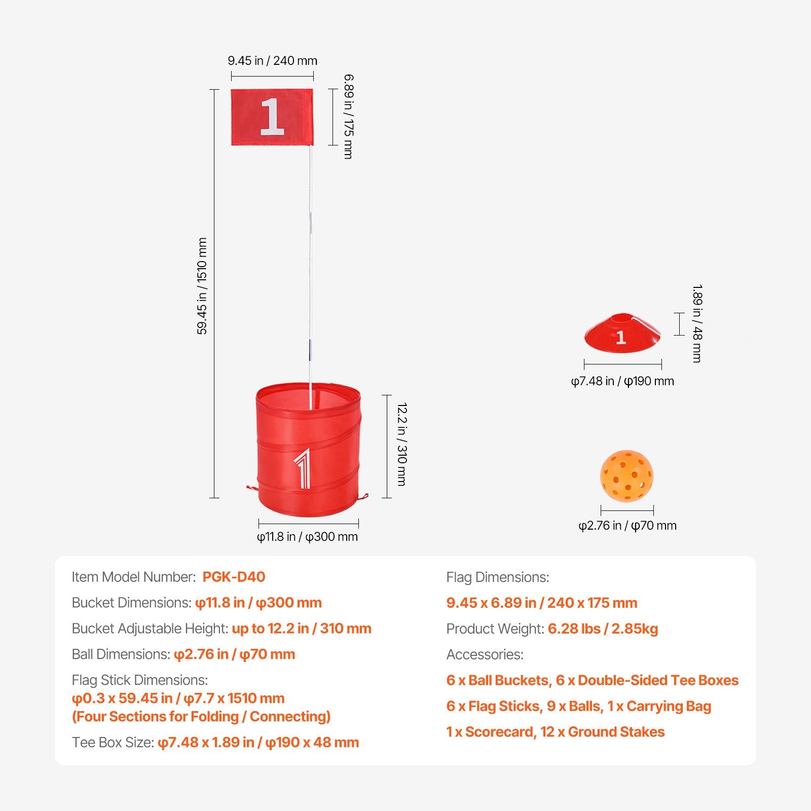 VEVOR-Golfball: Der 2,76 Zoll/70,00 mm große Pickleball ist größer und leichter zu schlagen, wodurch das Bucket-Golf-Spiel für Anfänger und Kinder geeignet ist.