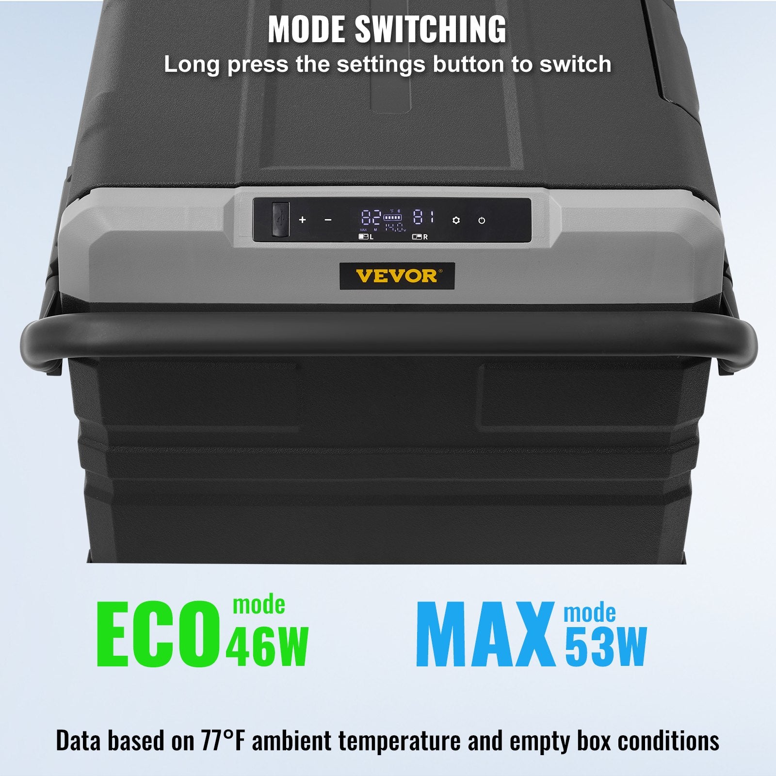 LED-Anzeige und Bluetooth-Steuerung: Über das LED-Bedienfeld können Sie den Betriebszustand des Autokühlschranks direkt ablesen und den Temperaturbereich jederzeit anpassen. Sie können auf dem Bedienfeld jede beliebige Temperatur zwischen -20 °C und 20 °C / -4 °F und 68 °F einstellen. Die elektrische Kühlbox verfügt außerdem über einen Bluetooth-Modus und ist mit einer mobilen App zur Fernsteuerung verbunden.