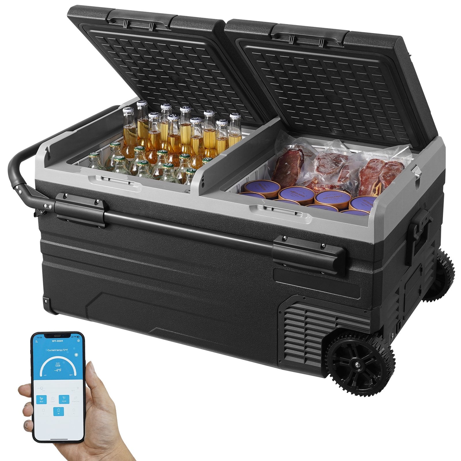 Tragbarer Autokühlschrank mit Gefrierfach, Kompressor, 95 l, Dual Zone, für Wohnmobile