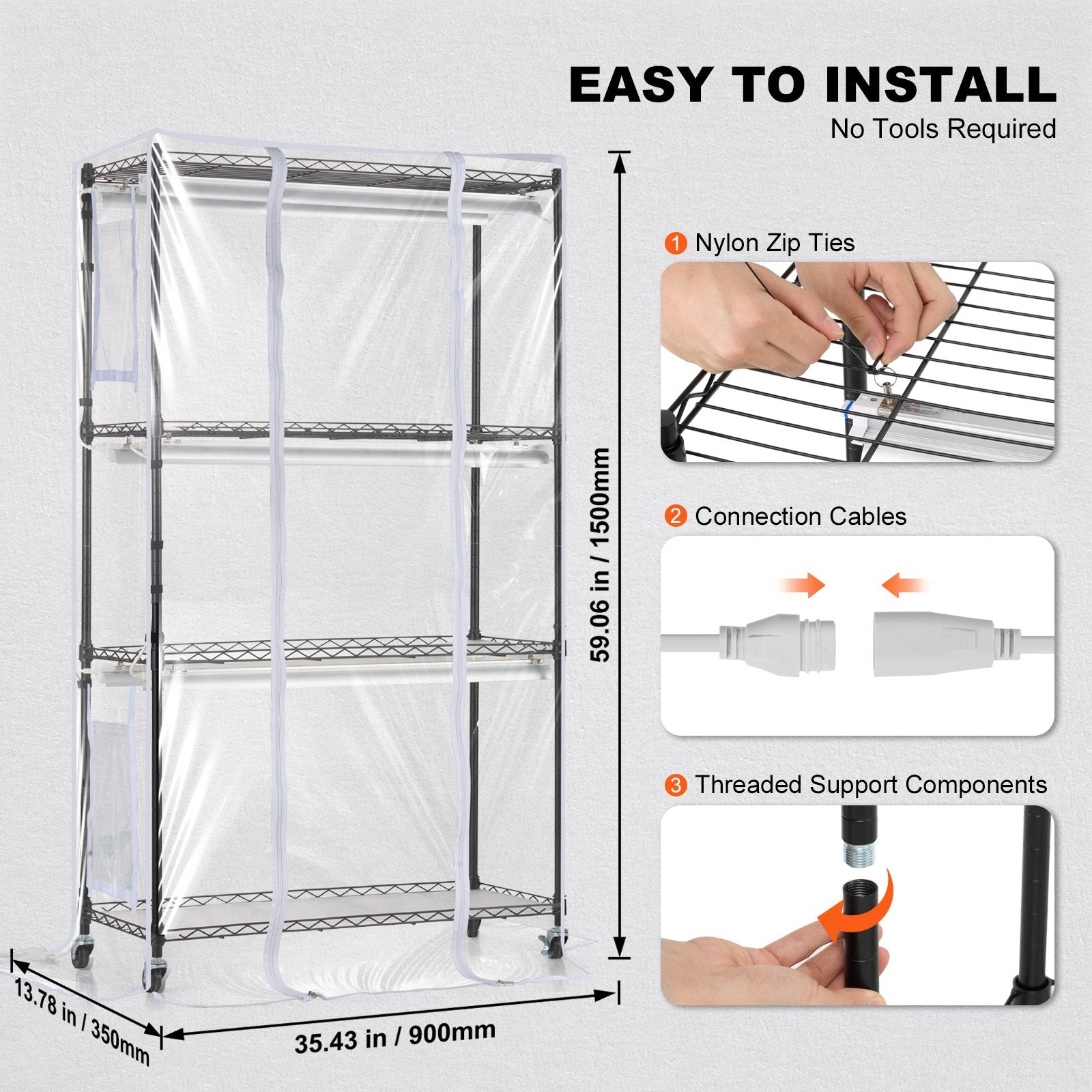 Gewächshausabdeckung und Hygrometer inklusive: Dieser robuste Pflanzenständer enthält eine Gewächshausabdeckung aus strapazierfähigem EVA-Material, die für Wärme und Luftfeuchtigkeit im Inneren sorgt. Der transparente Deckel ermöglicht es Ihnen, das Pflanzenwachstum auch unter rauen Bedingungen zu überwachen und schafft so eine feuchte und warme Umgebung für Ihre Pflanzen. Der Ständer misst 90 x 35 x 140 cm und verfügt über vier Ablagen mit jeweils 90 x 35 cm und einer Gesamttragfähigkeit von 150 kg. So können Sie Pflanzen auch auf engstem Raum vertikal präsentieren.