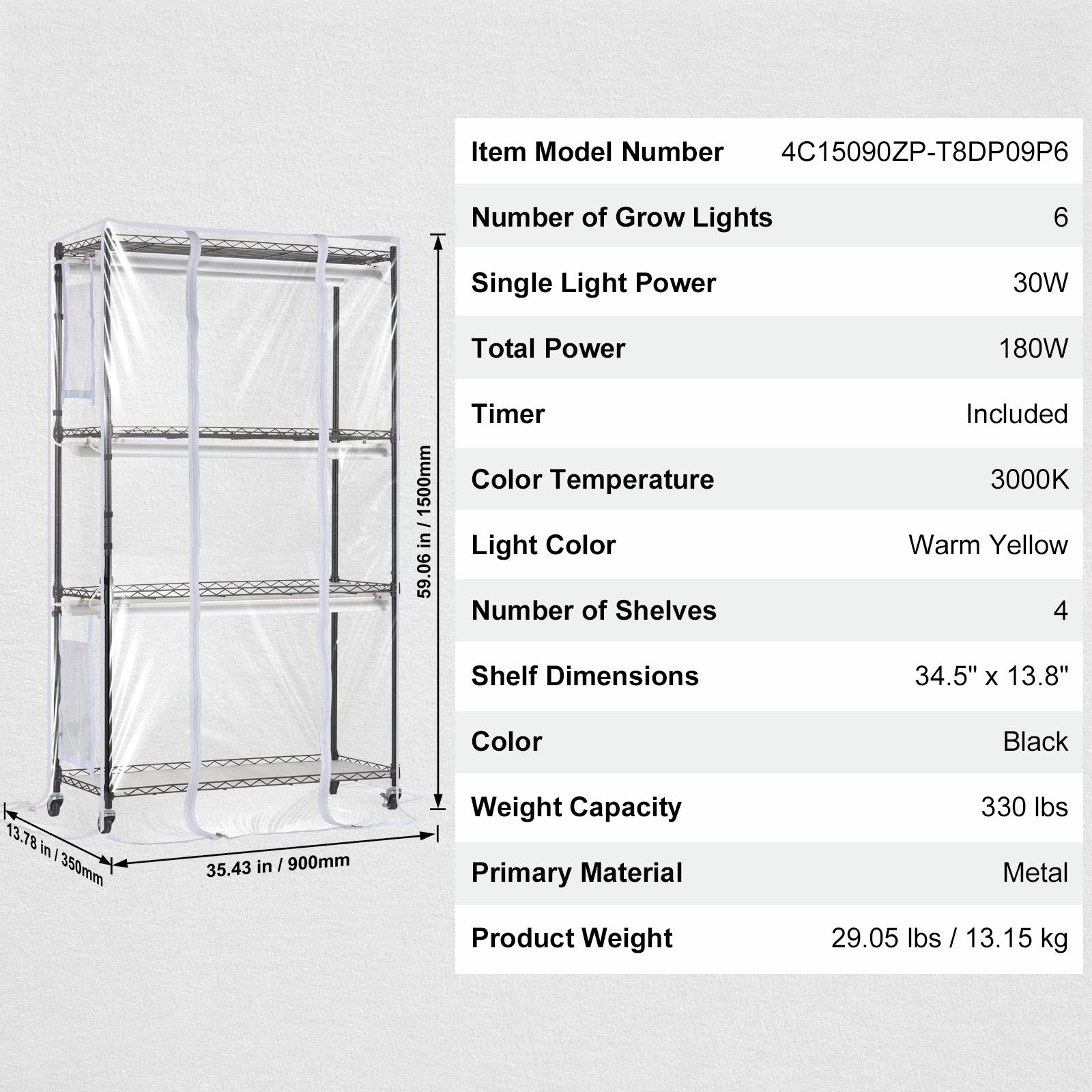 Gewächshaus für den Innenbereich mit Pflanzenlicht, 4 Ebenen, 180 W, 149,9 cm Pflanzenlichtregal