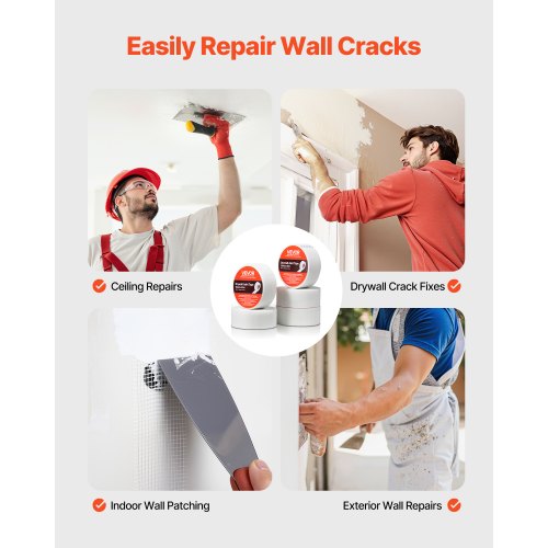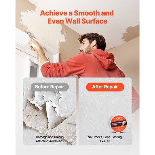 Breite Abdeckung: Jede Rolle unserer Trockenbauwände ist 45 m lang und 50 mm breit und deckt problemlos große Risse ab. Erhalten Sie schnell glatte, makellose Wände – die perfekte Wahl für Wandreparaturen im Haus.