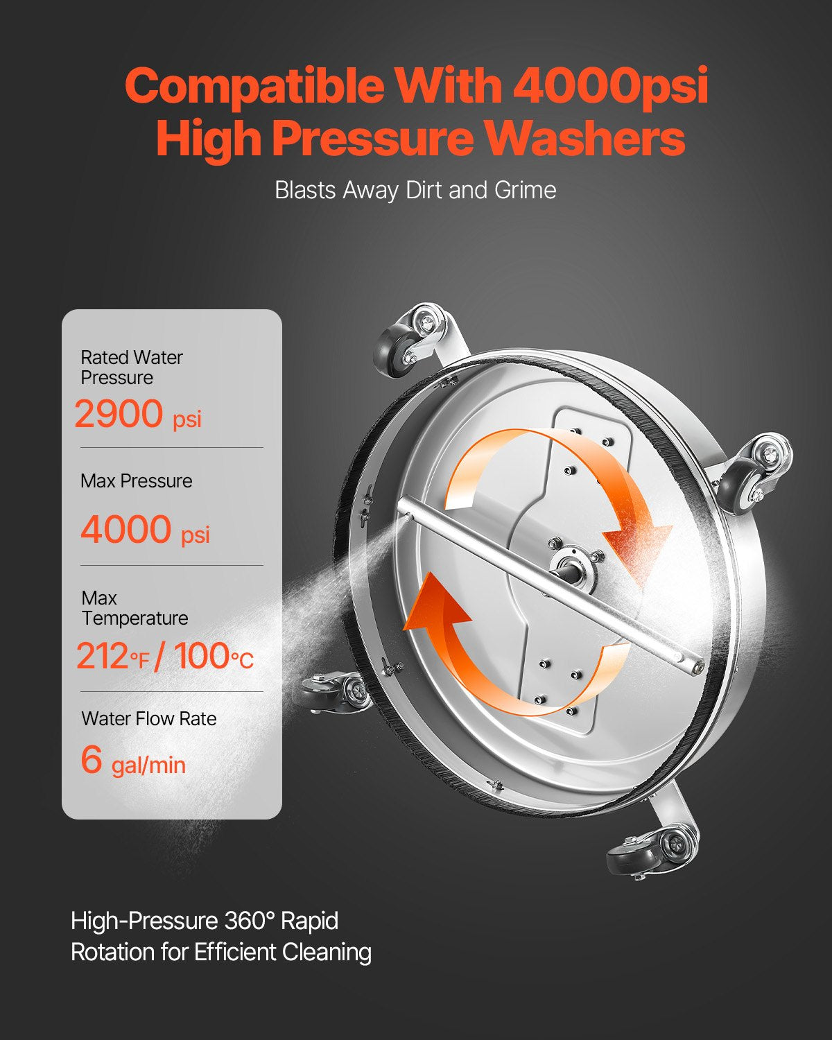 21" Hochdruckreiniger, Oberflächenreinigung, 4 Räder, Doppelgriffe, 4000 Max PSI