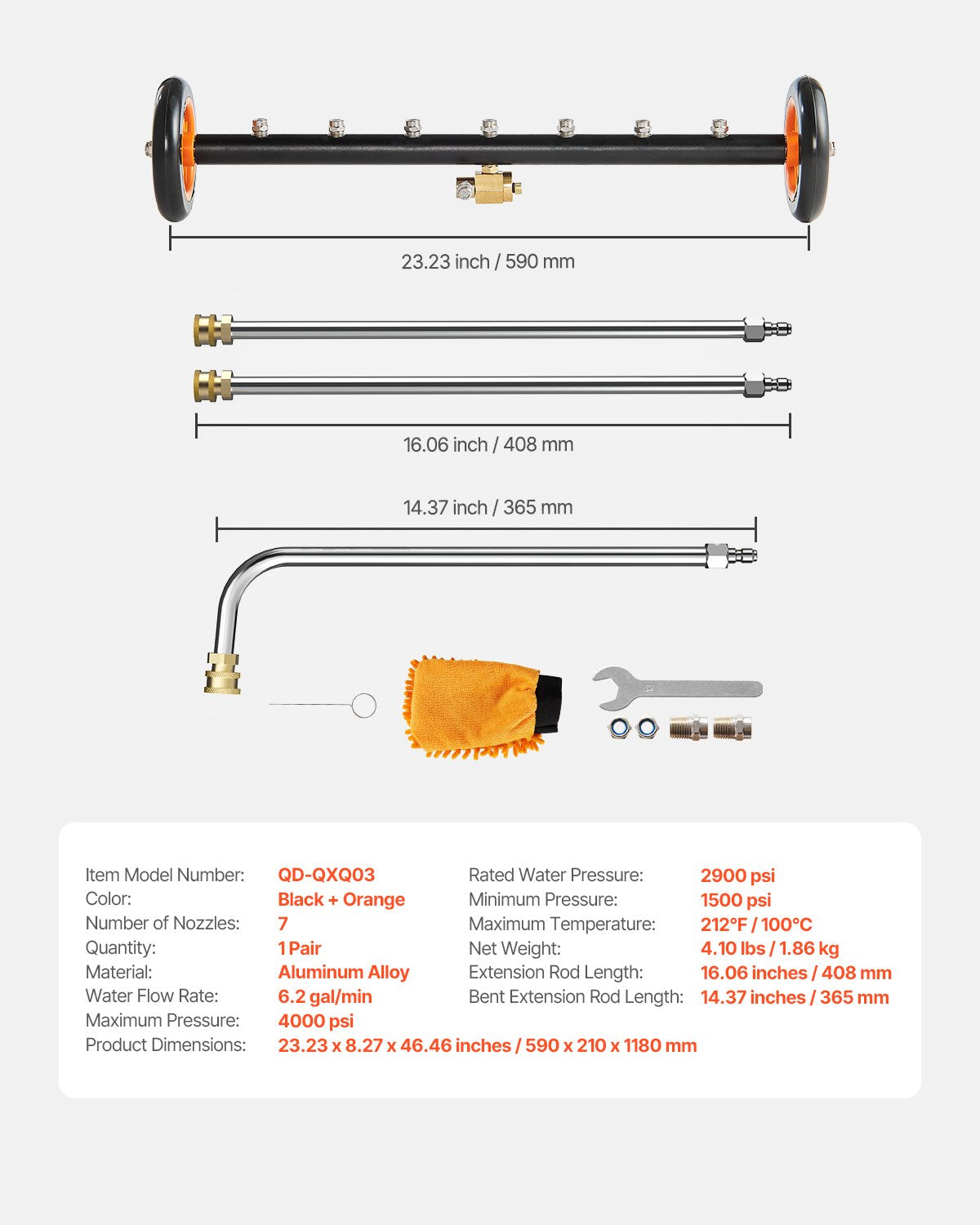 24" Hochdruckreiniger Unterbodenreiniger mit 2 Rädern 2 verlängerte Stäbe