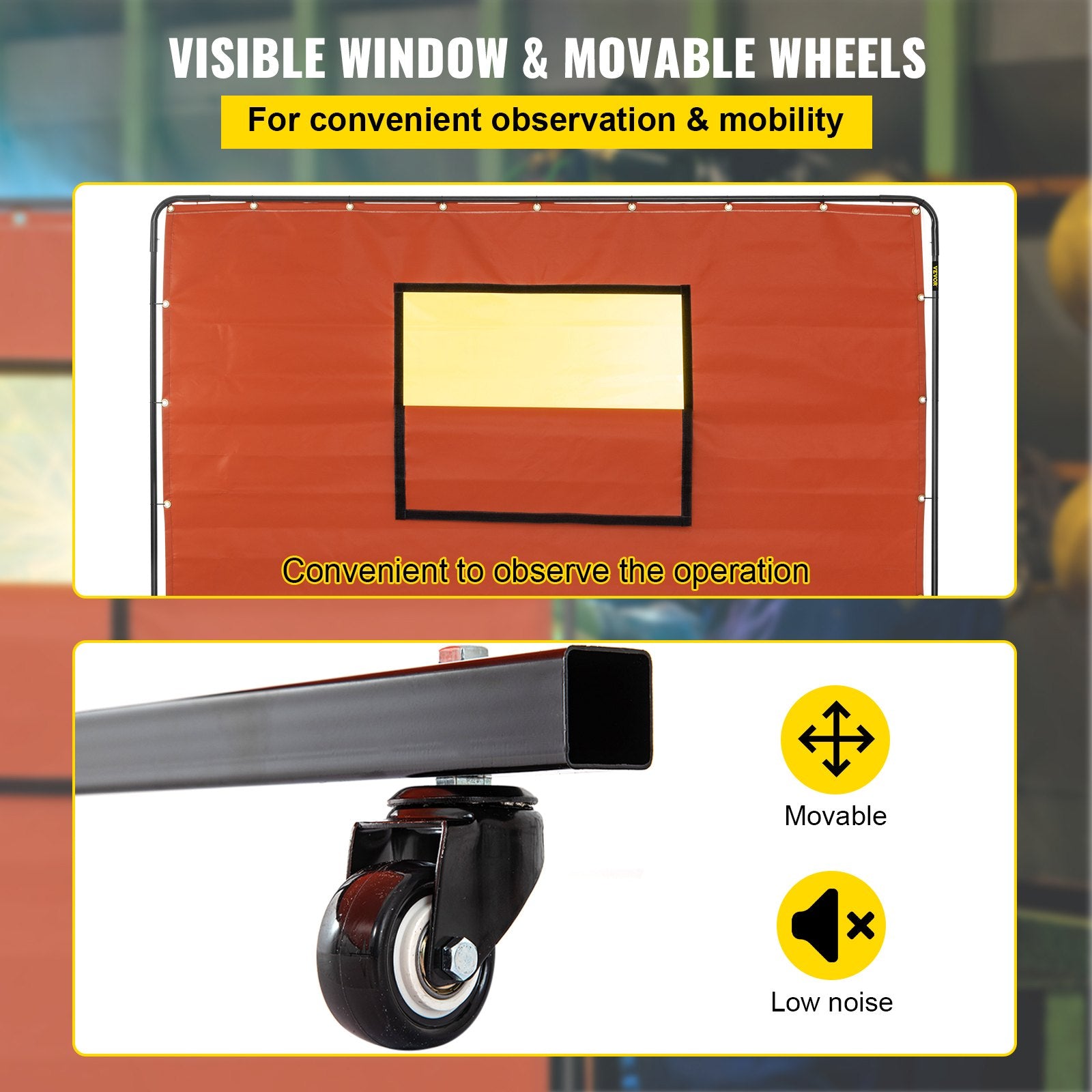 Sichtfenster und bewegliche Räder: Durch das Sichtfenster können Sie den Vorgang bequem und bei maximalem Schutz beobachten. 4 Schwenkräder erleichtern das Bewegen des Vorhangs.