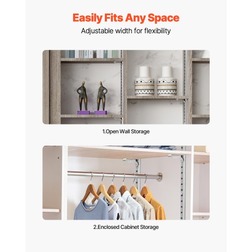 Flexible Höhe und Breite: Sie können die Höhe und Breite der Pilaster-Regalschiene einfach anpassen, um alles unterzubringen, von hohen Dekorationen bis hin zu gestapelten Büchern, und so eine vollständig anpassbare Aufbewahrungslösung zu schaffen.
