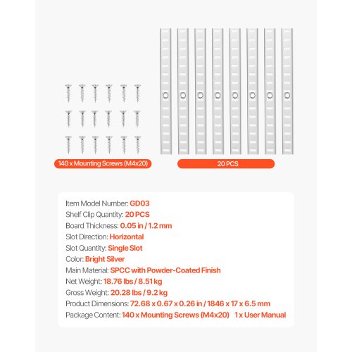 Regalschiene 72,3 Zoll, 20er-Pack verstellbare wandmontierte Stahlregale, Pilaster | EU