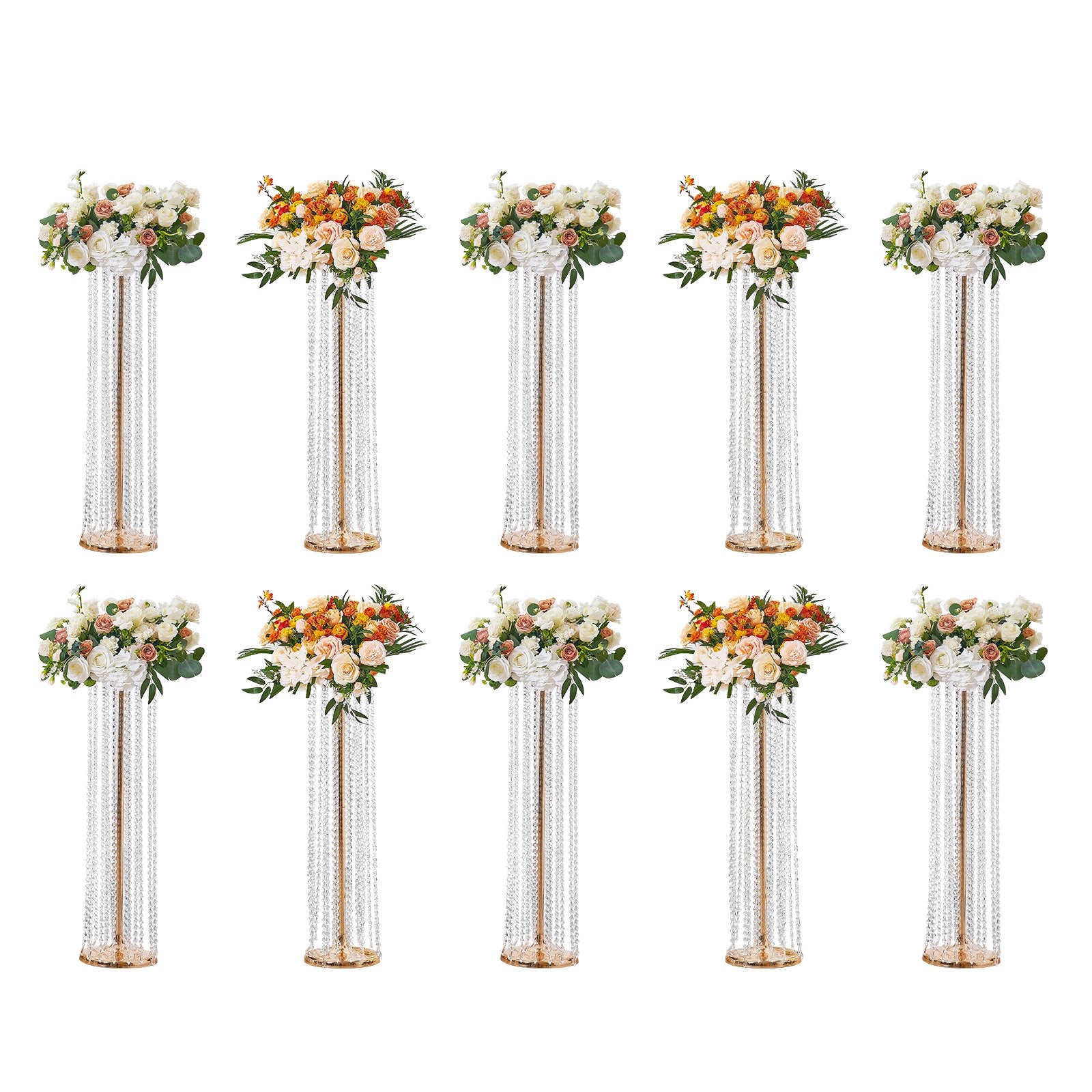 10 Stück 90 cm hoher Kristall-Blumenständer für Hochzeiten, luxuriöse Mittelstücke, Blumenvasen, Kristall, Gold, Metall, perfekt für die T-Bühne, Hochzeitsfeier, Zeremonie, Abendessen, Veranstaltung, Hotel, Heimdekoration