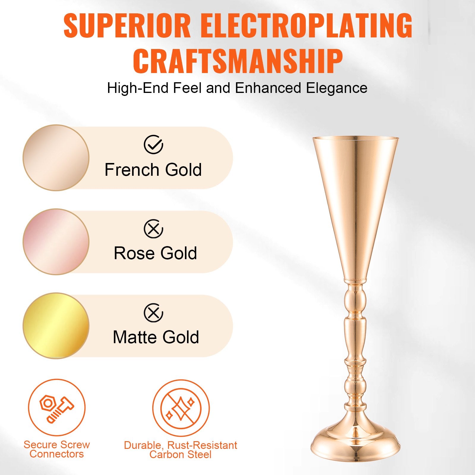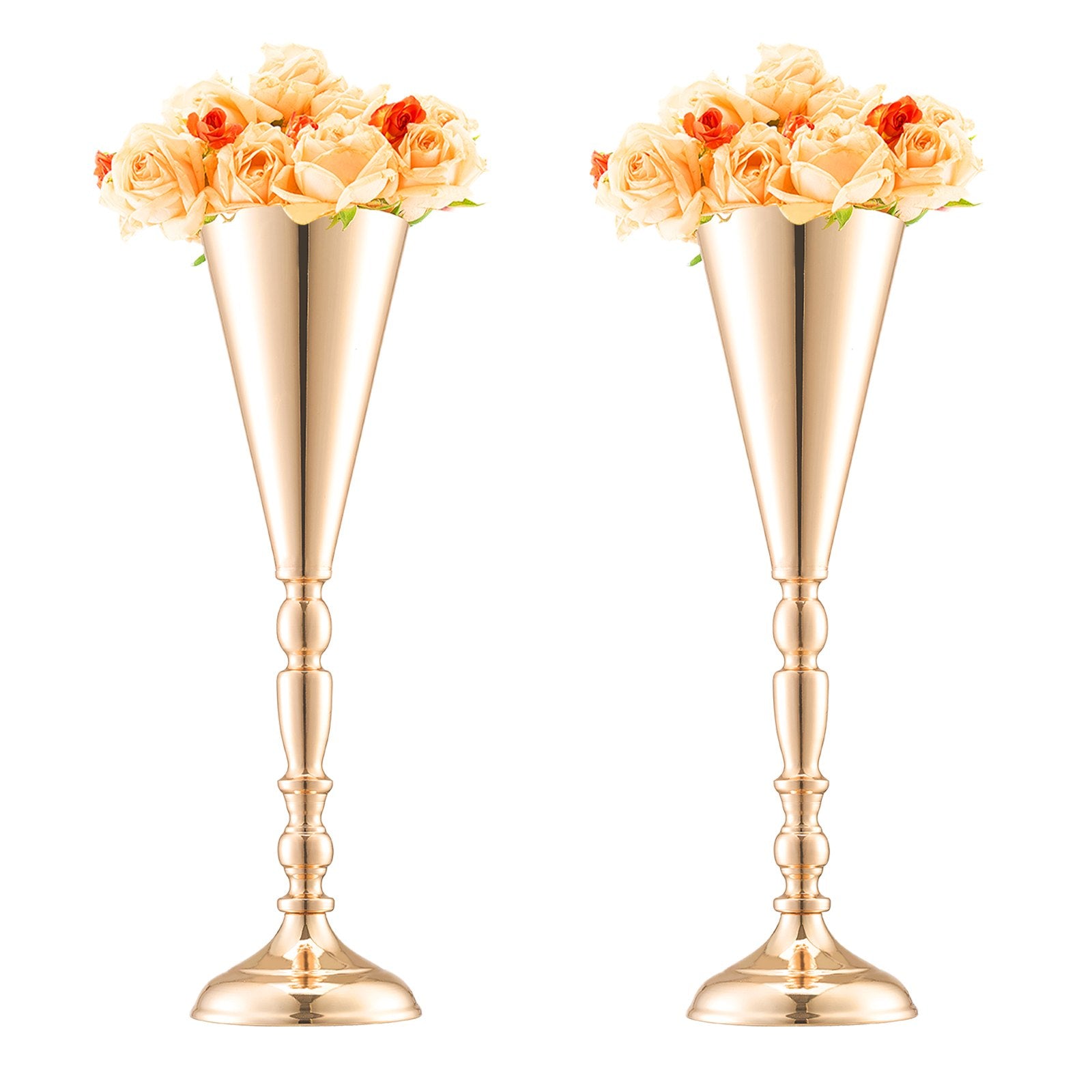 10 STÜCKE 43 cm/16,9 ”hohe hochzeit blumenvase metall gold trompete für