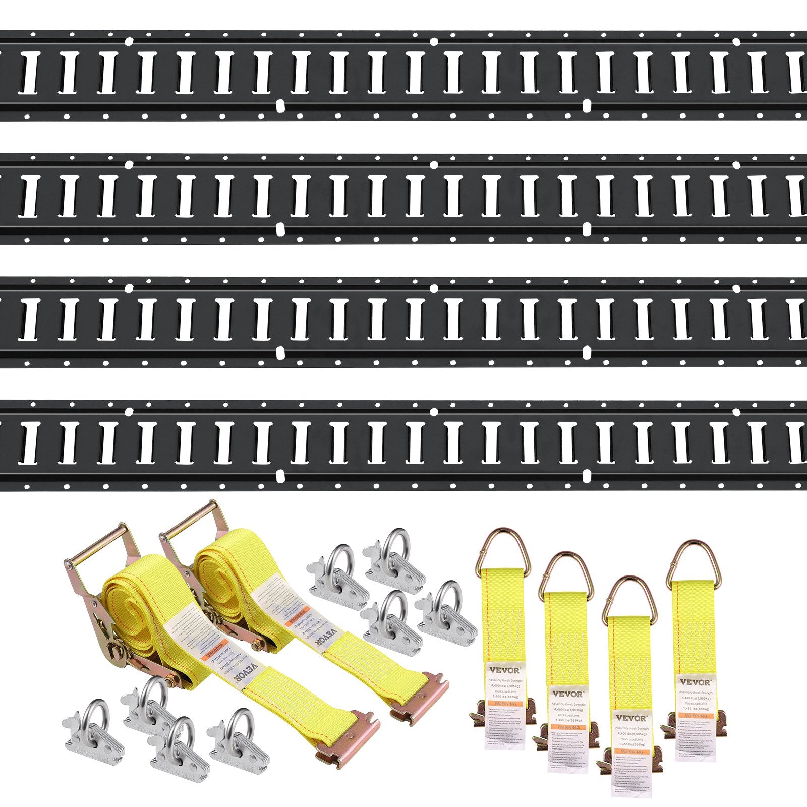 E-Track-Zurrschienen-Set, 18-teiliges 5-Fuß-E-Tracks-Set, inklusive 4 Stahlschienen, 8 O-Ring-Anker, 4 D-Ring-Verschlüssen und 2 Riegeln, Zubehör zur Sicherung von Frachtmotorrädern, 2000 lbs