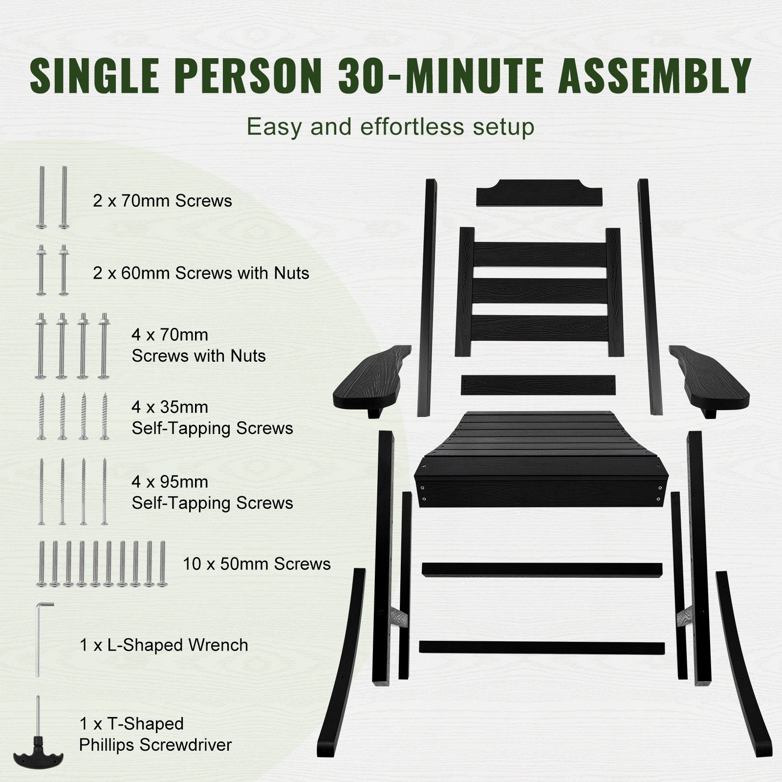 Bequemes Sitzerlebnis: Unser ergonomischer Outdoor-Schaukelstuhl neigt sich um 5° nach hinten und hält Ihren Rücken natürlich zurückgelehnt. Mit einer erweiterten Sitztiefe von 50 cm bietet er mehr Komfort beim Entspannen. Die sanfte Schaukelbewegung des Fußes sorgt für ein sanftes und gleichmäßiges Schaukelerlebnis, sodass Sie entspannen und einen wohltuenden Rhythmus genießen können.