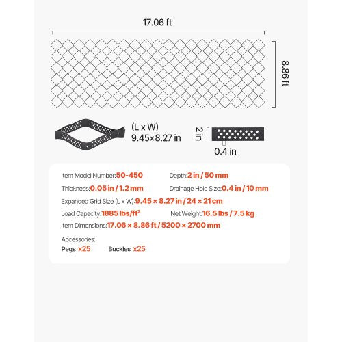 Bodengitter 2 Zoll tiefes Geozellengitter 17,06 x 8,86 Fuß / 5200 x 2700 mm für Kies
