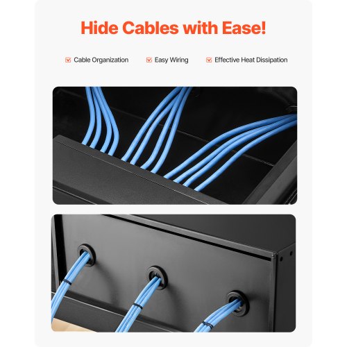 Effektiv kabeldragning: Tre kabelhanteringshål gör det enkelt att organisera kablarna. Denna rackmonterade låda håller kablarna prydliga, dolda och ditt utrymme ser professionellt ut.