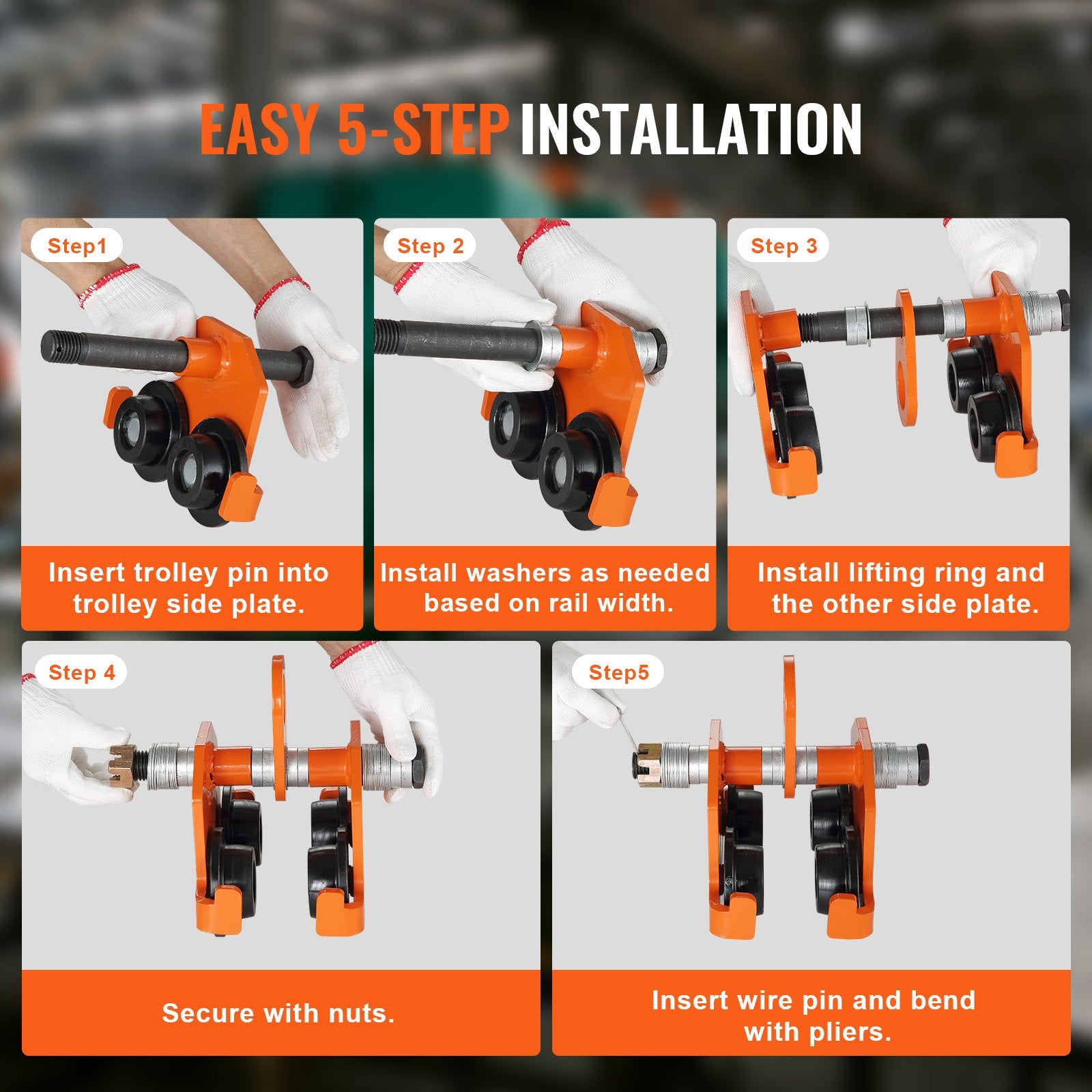 Einstellbare Breite: Unser manueller Wagen passt sich Ihren Bedürfnissen mit einer einstellbaren Breite von 2,5 bis 8 Zoll an. Befestigen Sie ihn fest an I- und H-Trägern mit 30 praktischen 2,5-mm-Unterlegscheiben und 8 praktischen 10-mm-Unterlegscheiben. Er passt perfekt zu einer Reihe von Stahlträgern und macht Anpassungen zum Kinderspiel.