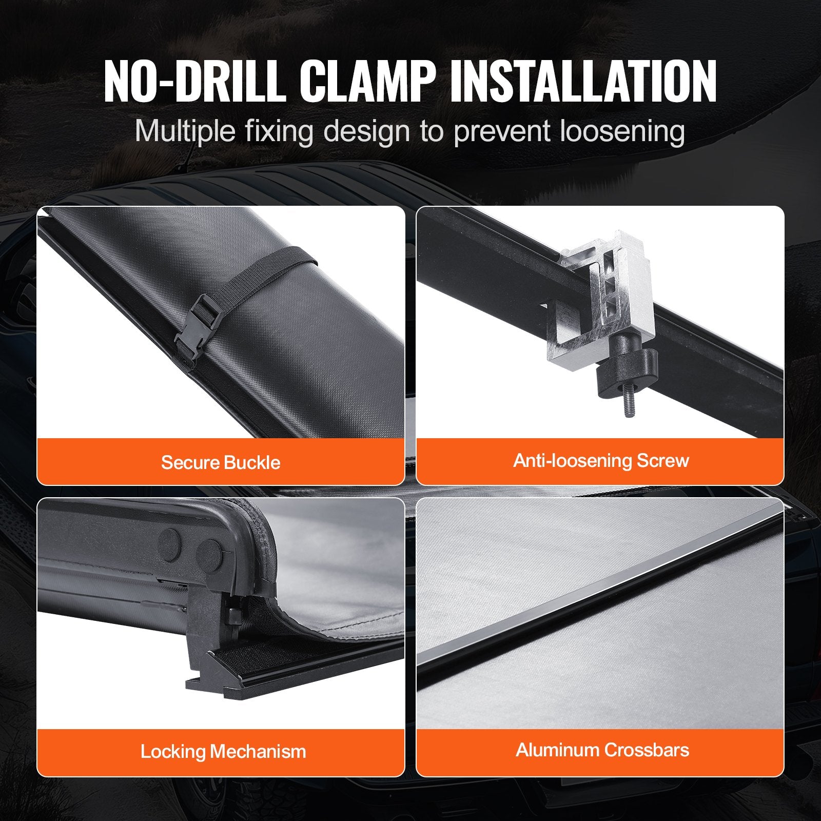 Wetterfest: Hergestellt aus dickem und reißfestem PVC-Material, hält es hohen Temperaturen stand und verhindert das Eindringen von Regen und Schnee. Ausgestattet mit wasserdichtem Schaumstoff, um das Eindringen von Wasser und Schmutz in die Ladefläche zu reduzieren. Der Innenraum verfügt über robuste Aluminium-Stützstangen, die rostbeständig, robust und biegefest sind und ein reibungsloses Entfalten ohne Wasseransammlung gewährleisten.