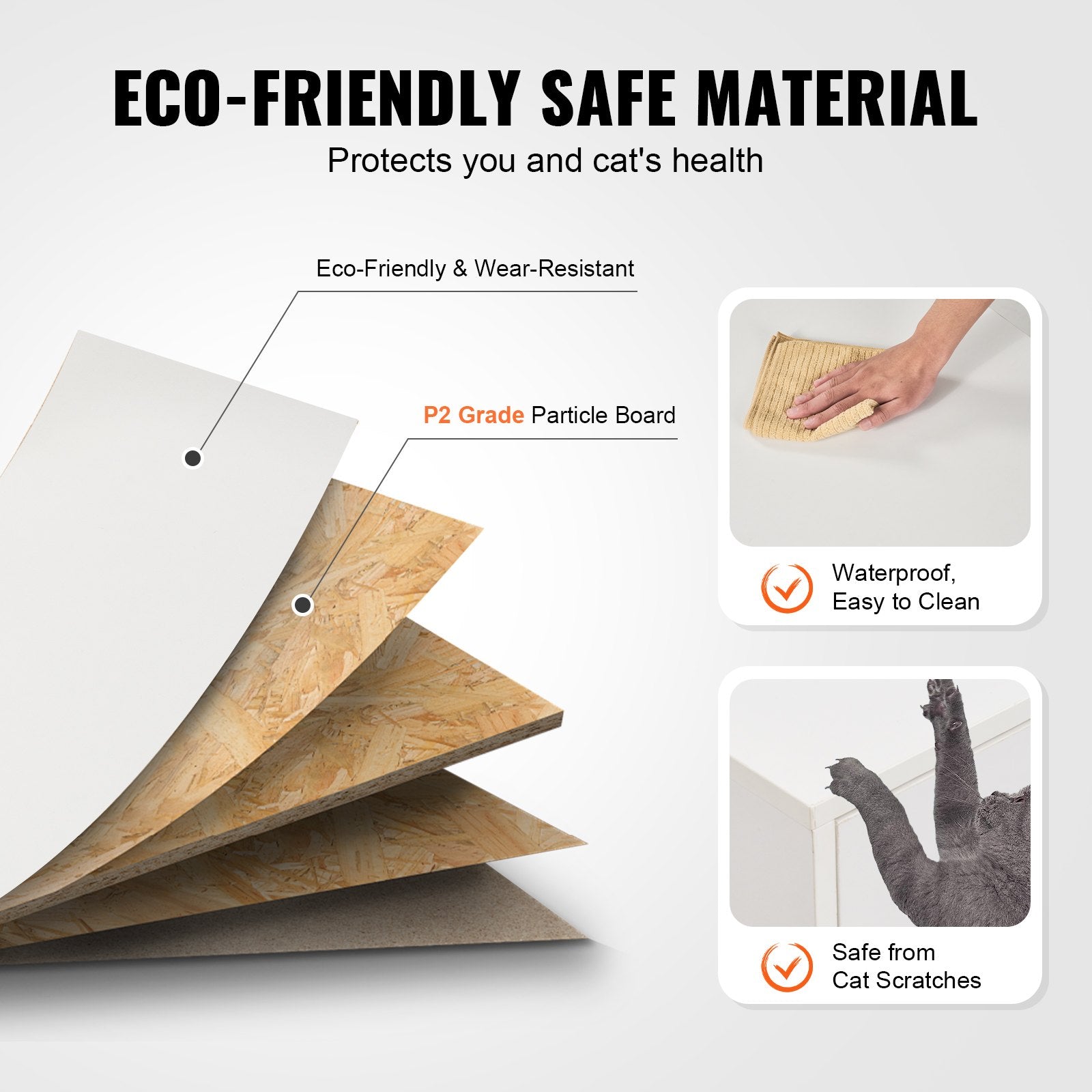 Robust: Die maximale Tragkraft beträgt bis zu 136 kg. Dank der robusten und stabilen Konstruktion können Vasen, Bücher oder andere Dekorationen sicher aufgestellt werden. Die Katzentoilette kann auch als Katzenhaus, Teetisch, Couchtisch oder TV-Schrank verwendet werden. Sie ist stapelbar und bietet so optimale Platzausnutzung.
