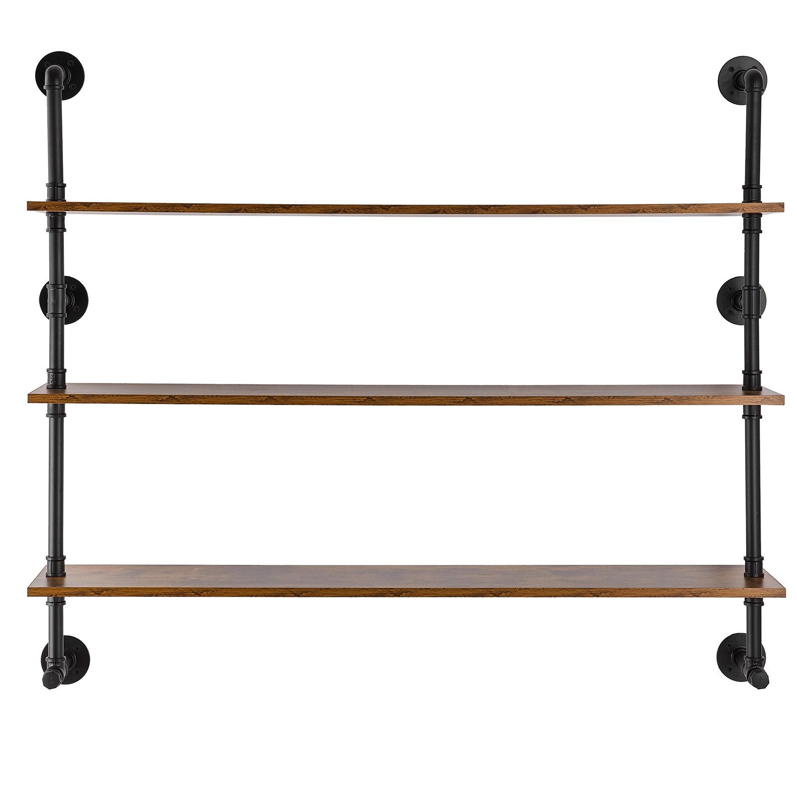 Industrielles Rohrregal, 3-stufig, 122 x 25 cm, Wandhalterung für Küche und Schlafzimmer