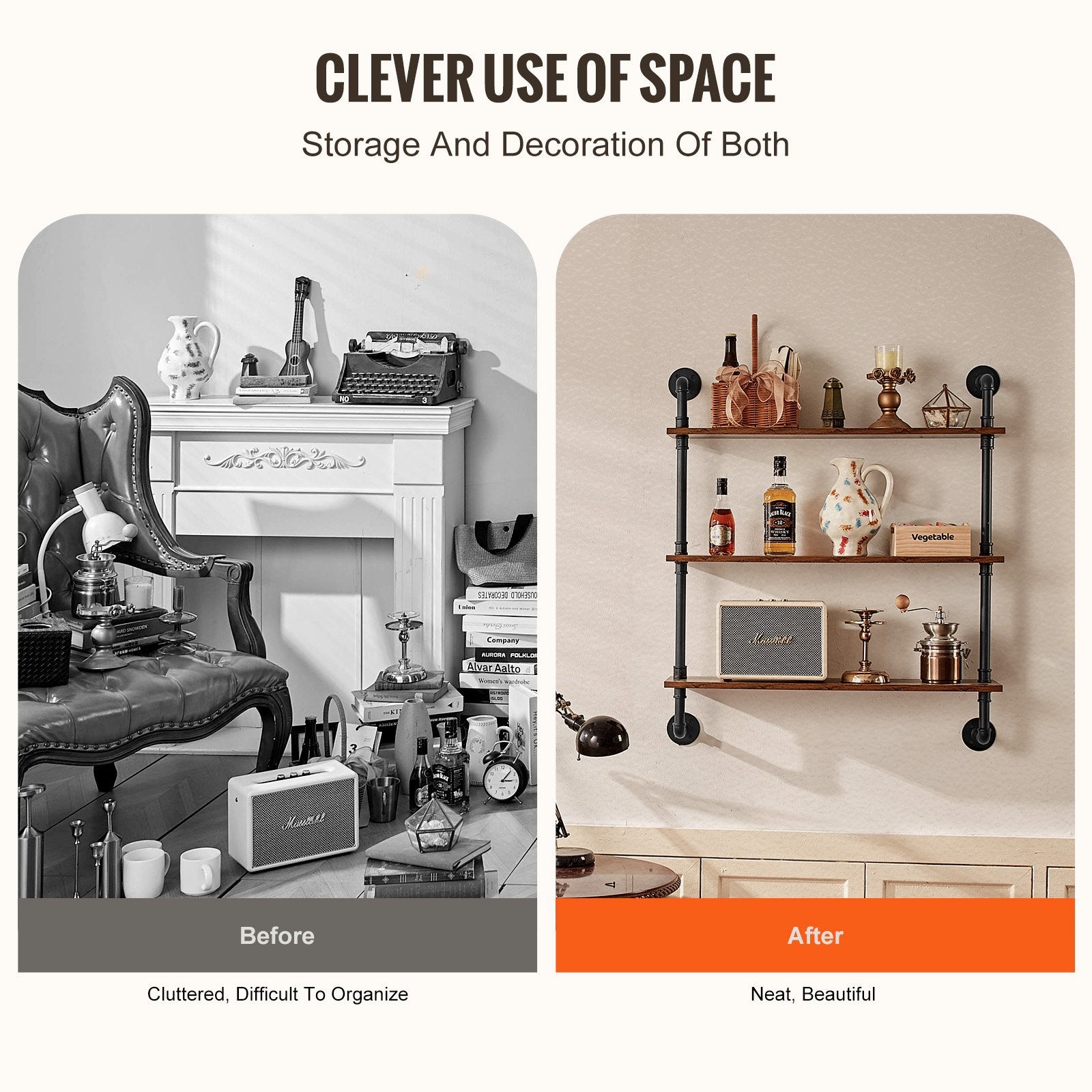 Industrielles Rohrregal, 3-stufig, 81,3 x 25,9 cm, Wandhalterung für Küche und Schlafzimmer