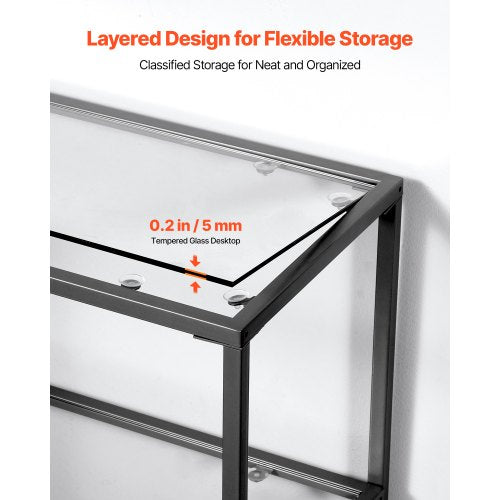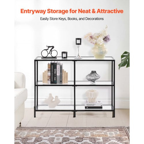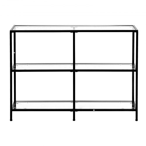 3-stufiger Glaskonsolentisch, rechteckiger Beistelltisch mit Kippschutz, schwarz