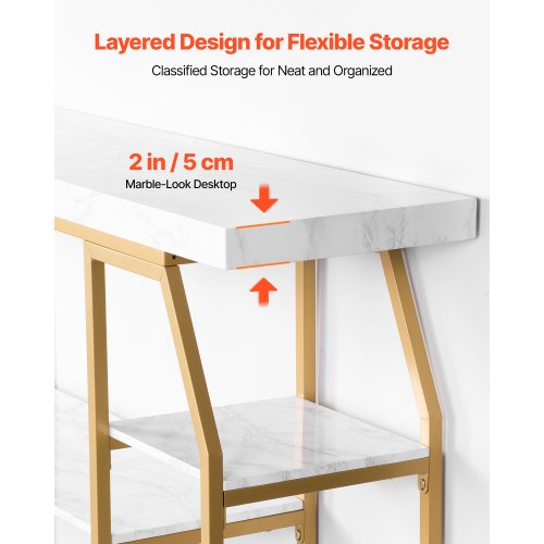 Dicke Tischplatte: Dieser Konsolentisch hat eine 5 cm dicke Kunstmarmorplatte, die ihn stilvoll und robust macht. Sie lässt sich leicht abwischen und sorgt mit minimalem Aufwand für ein gepflegtes Aussehen der Oberfläche.