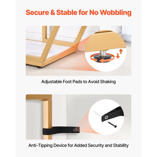 Durchdachte Details: Verstellbare Fußplatten passen sich Bodenunebenheiten an und sorgen so für einen sicheren Stand des Tisches, verhindern ein Wackeln und schützen Ihren Boden vor Kratzern. Für zusätzliche Sicherheit sorgt der Kippschutz – montieren Sie ihn unbedingt für mehr Stabilität.