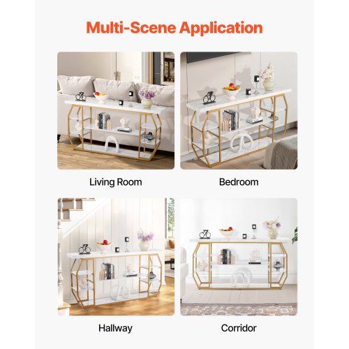 Vielseitiges Design: Perfekt für Eingangsbereiche, Wohnzimmer, Flure und Schlafzimmer. Dieser Tisch kann als Konsolentisch, Couchtisch oder Eingangstisch verwendet werden. Er dient sowohl als Ablagefläche für Tabletts, Kaffee, Pflanzen, Bücher, Schlüssel und Taschen als auch als Präsentationstisch, der den Stil Ihres Zuhauses aufwertet.