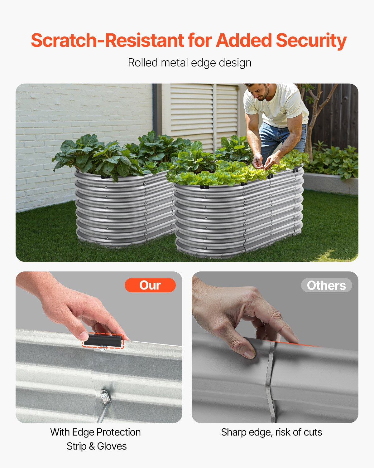 Sichere Anwendung: Um Ihre Sicherheit während der Anwendung zu gewährleisten, verfügt unser erhöhter Pflanzkasten über gerollte Kanten mit Kantenschutz, um Handverletzungen oder Kratzer zu vermeiden. Verwenden Sie ihn beruhigt und genießen Sie müheloses Gärtnern.