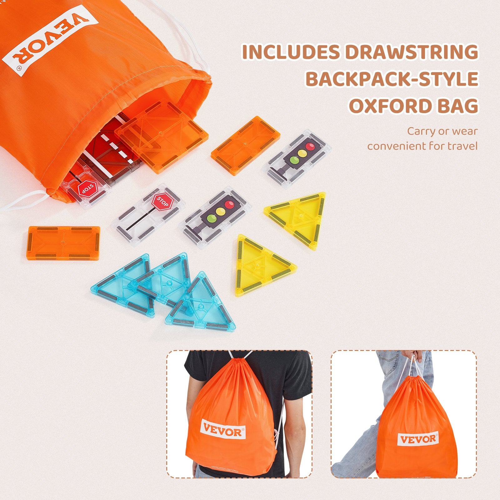 Mega-Pack mit 56 Teilen: Entfesseln Sie die Kreativität Ihres Kindes mit den magnetischen VEVOR-Steinen! Dieses spannende Set enthält 56 magnetische Teile – 24 Quadrate, 6 gleichseitige Dreiecke und 2 Rechtecke – perfekt für den Bau einer stabilen Stadtwelt. Im praktischen Nylonbeutel mit Kordelzug lässt es sich leicht transportieren.