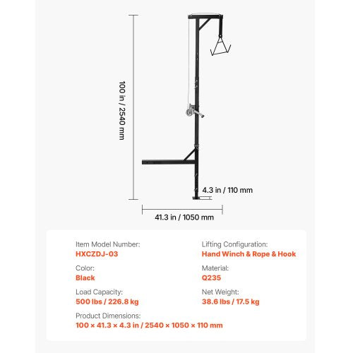 lastbilshitch viltlyft, 500 lbs lastkapacitet, jakthjortlyft med 2-tums mottagare, 360-graders svängbar axel och justerbar höjd, inkluderar gambrelvinsch för flåing och rengöring av vilt | EU