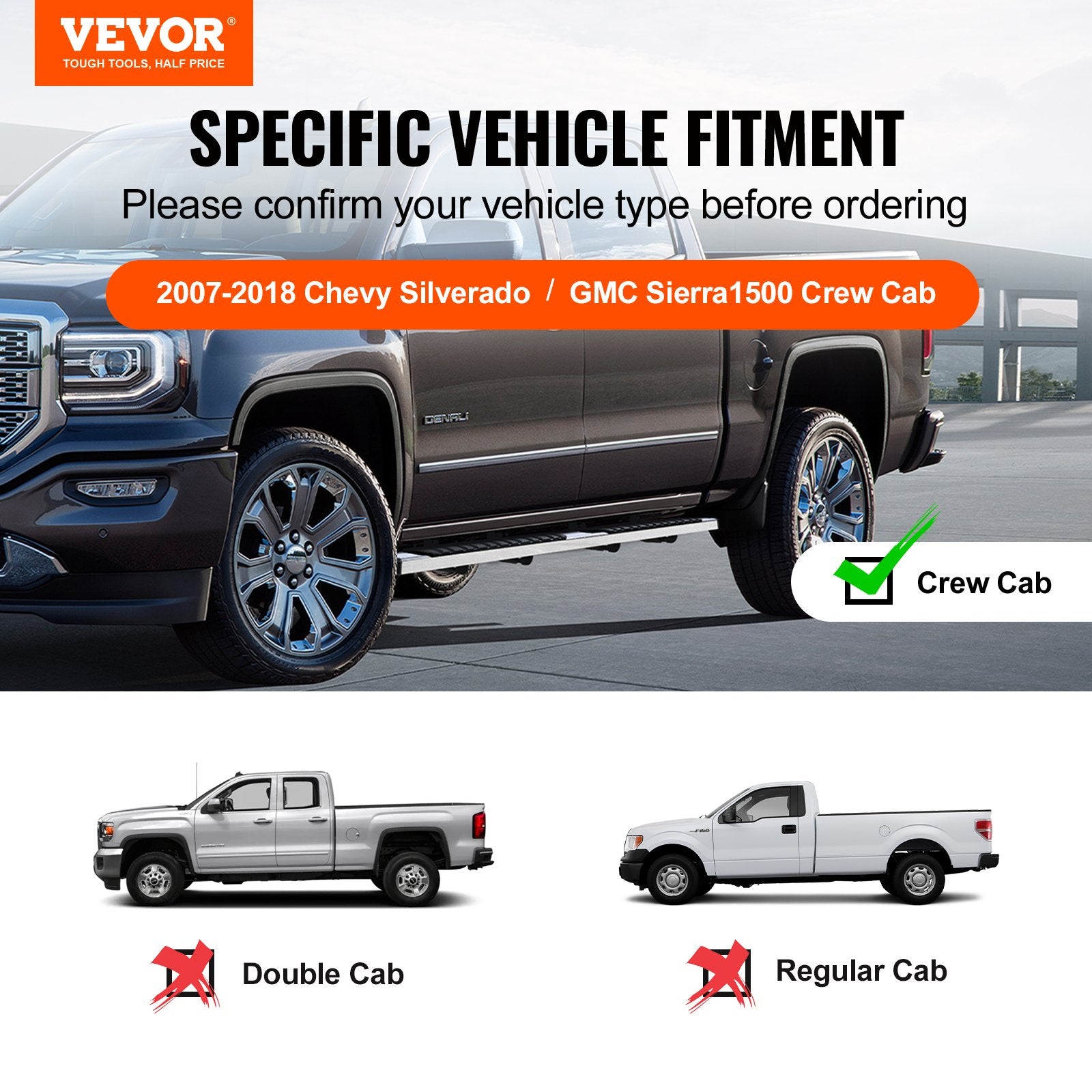 Trittbretter, 6-Zoll-Trittbretter, kompatibel mit 2007–2018 Chevy Silverado/GMC Sierra 1500 Crew Cab/2019 2500HD 3500HD 1500 LD, 201 Edelstahl-Seitentrittbretter, Nerf Bars, 500 Pfund Kapazität, 2er-Pack.