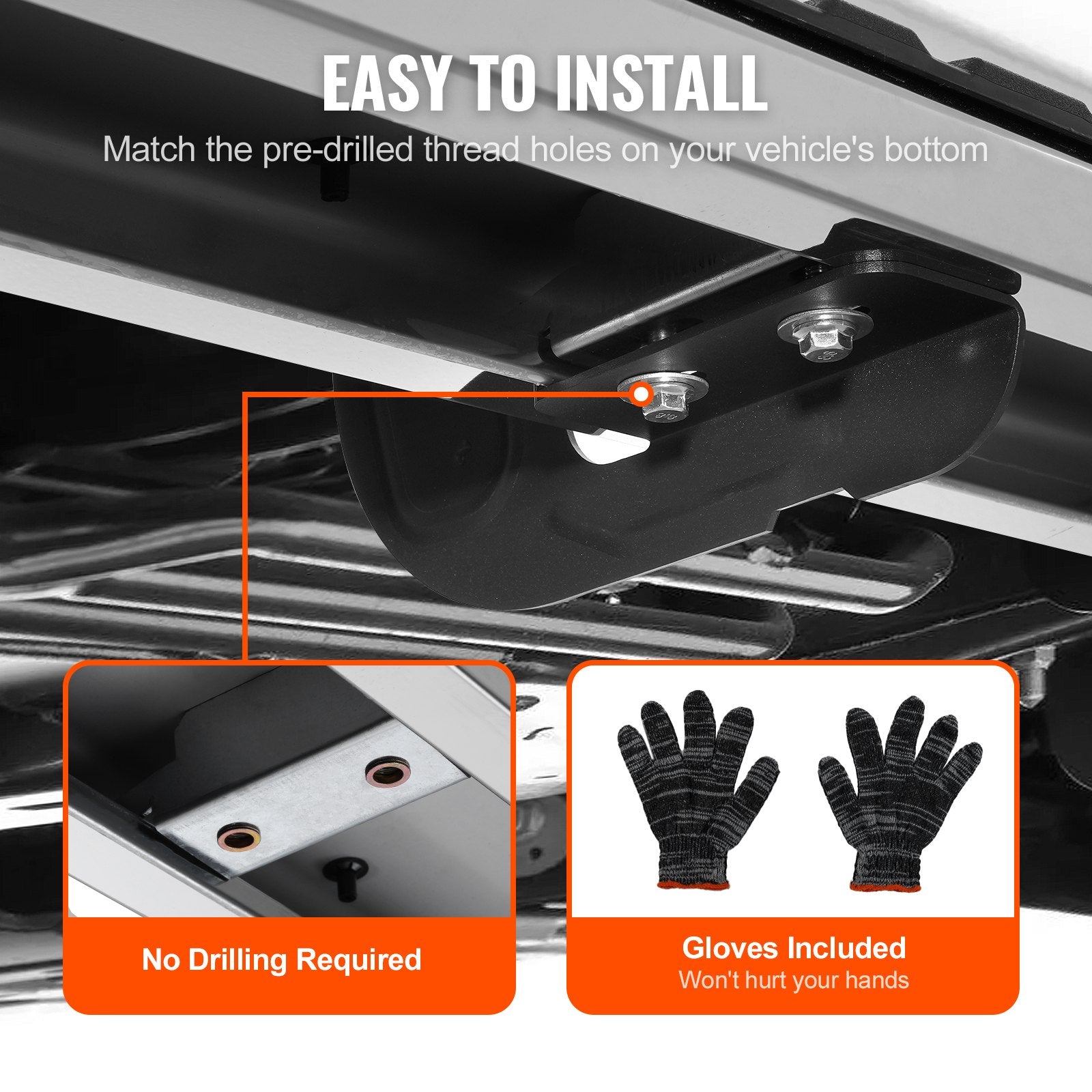 Tragfähigkeit: Dank hochwertiger Materialien und Konstruktion kann das Trittbrettpedal ein Gewicht von 227 kg tragen, was dem Gewicht von drei bis vier Erwachsenen entspricht. Diese Festigkeit stellt sicher, dass das Trittbrett auch bei starker Belastung stabil bleibt und seine Form und Funktion auch bei Dauereinsatz behält.