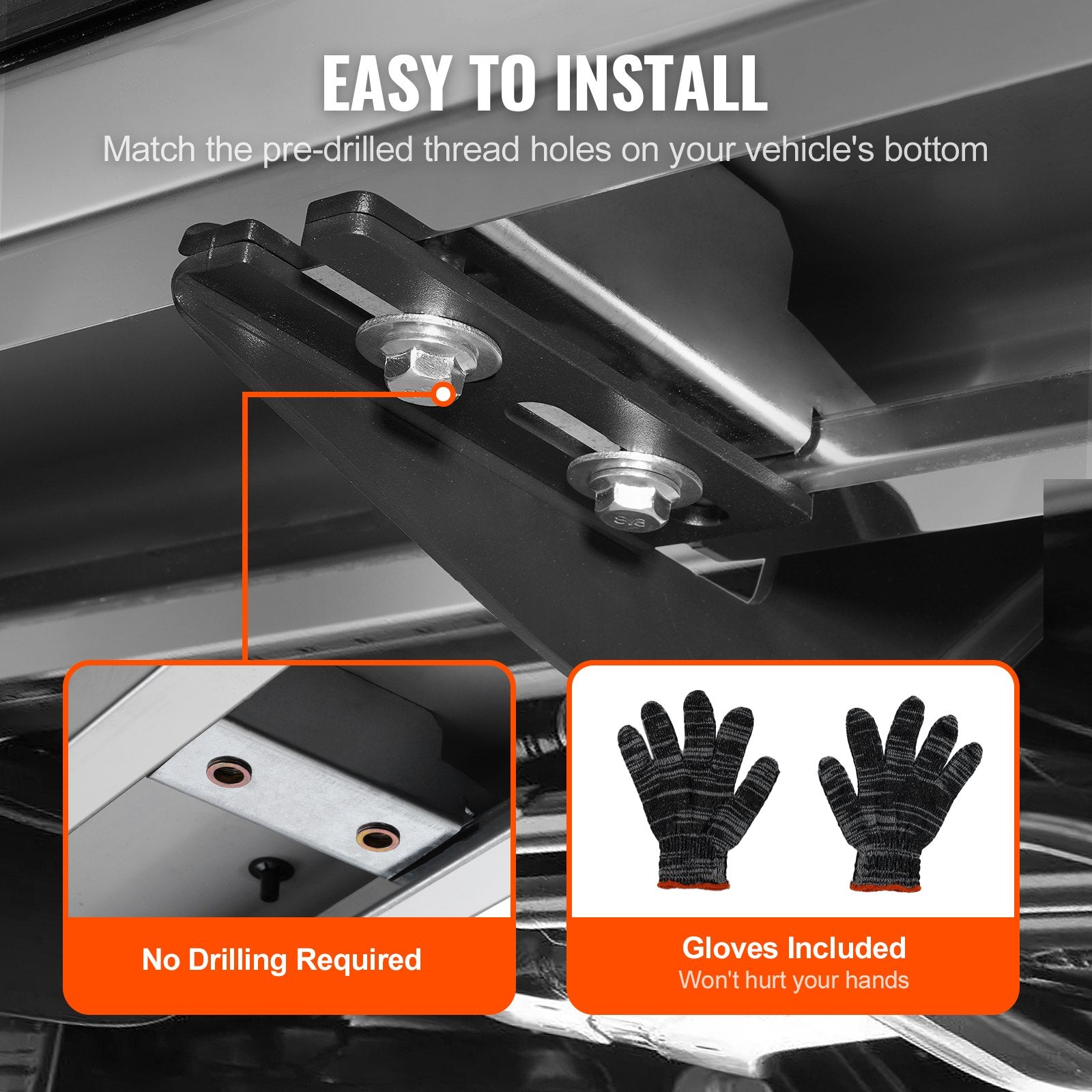 Breite, rutschfeste Trittstufen: Die 152,4 mm breite Trittstufe bietet einfachen Zugang und verfügt über eine rutschfeste, UV-beständige Oberfläche mit markanter Textur für zusätzliche Sicherheit. Sie ist benutzerfreundlich für Senioren, Kinder und Haustiere und schützt vor Ausrutschen und Fahrzeugschäden durch Straßenschmutz.
