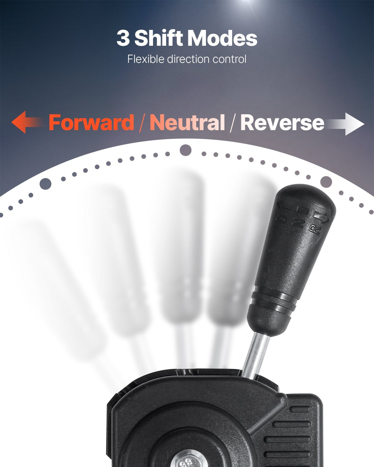 Drei Schaltmodi: Dieses mit einem Griff ausgestattete Getriebe bietet drei benutzerfreundliche Schaltmodi: Vorwärts, Rückwärts und Neutral, was eine komfortable und unkomplizierte Bedienung ermöglicht.