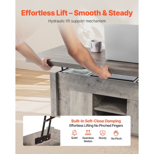 Allt-i-ett-mångsidighet: Växla direkt från avkoppling till arbete – platsbesparande, effektivt och designat för modern multitasking. Det lyftbara soffbordet kan höjas upp till 615 mm och når den perfekta höjden för att arbeta utan ansträngning.