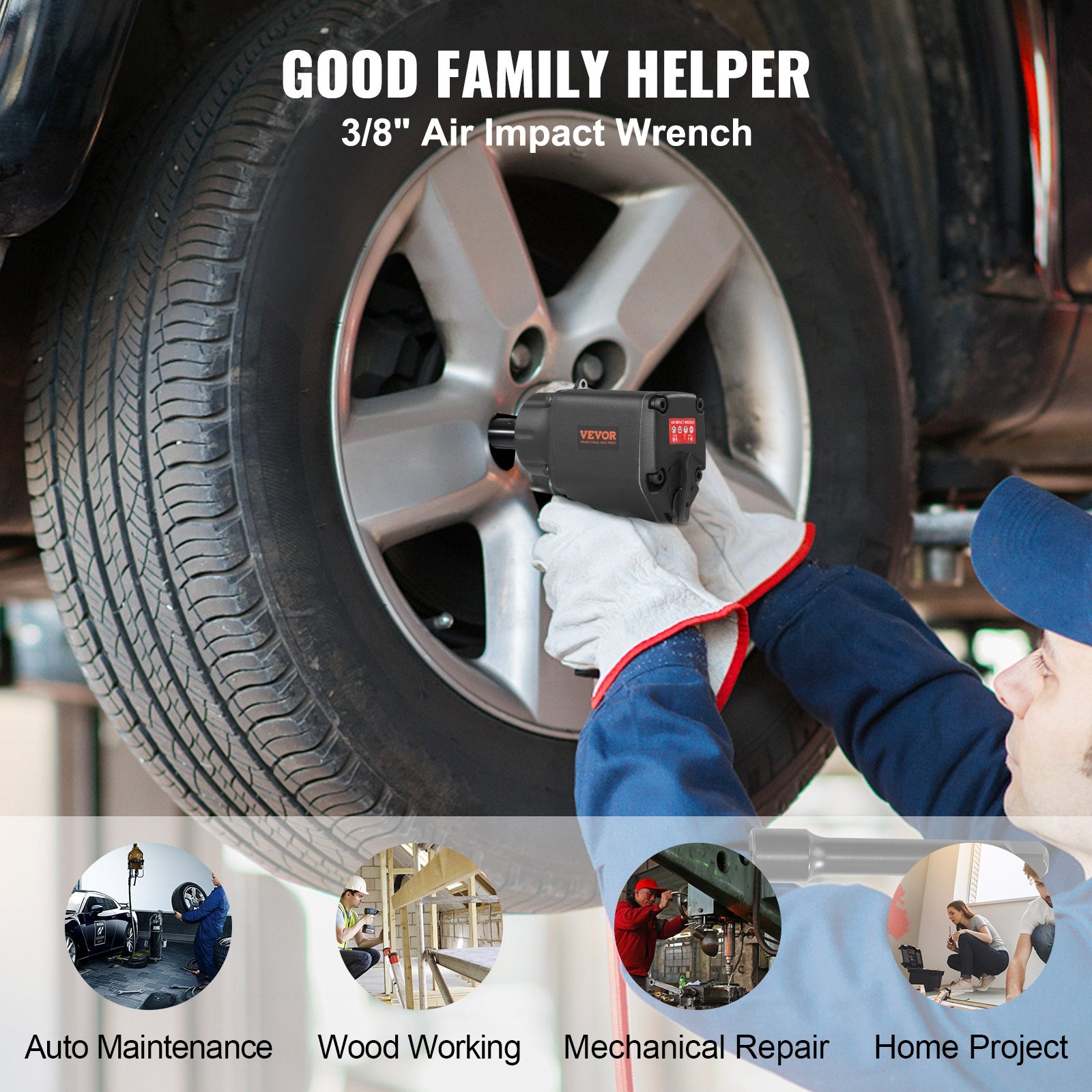 Druckluft-Schlagschrauber, 3/8-Zoll-Vierkantantrieb, 690 ft-lbs, Mutternsprengdrehmoment 90–120 PSI