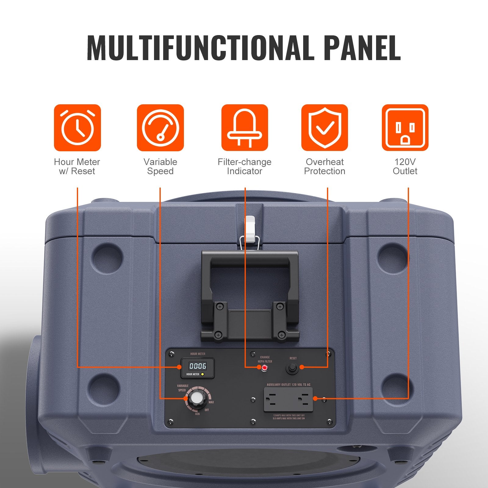 550 CFM Luftstrom: Diese Unterdruckmaschine verfügt über einen hocheffizienten Kupfermotor, der langlebiger und stabiler ist. Mit einem 39,4 cm (15,5 Zoll) großen Einlass und einem 21,6 cm (8,5 Zoll) großen Auslass bietet dieser Luftreiniger optimale Reinigung. Er verfügt über eine Filterfläche von 2.150 Kubikfuß und einen maximalen Luftstrom von 550 CFM (einstellbar), wodurch der gesamte Raum von saubererer Luft profitiert.