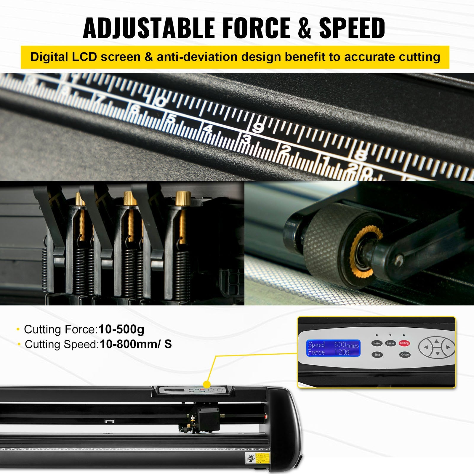 Digitales Bedienfeld: Mit LCD-Bildschirm und großem Bedienfeld für einfache Bedienung. Die Not-Aus- und Startfunktion ermöglicht sicheres und komfortables Anhalten und Neustarten des Schneidvorgangs. Der Roland-kompatible Klingenhalter ermöglicht den Zugriff auf die günstigsten Klingen auf dem Markt. Hinweis: Bei laufender Maschine nicht an die Klinge herantreten, da sonst Fingerverletzungen möglich sind.