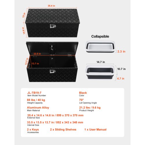 Großes Fassungsvermögen: Dieser geräumige Werkzeugkasten für die Ladefläche misst 899 x 370 x 370 mm und bietet ausreichend Platz für Eimer, Wartungswerkzeuge, Feuerlöscher, Warnschilder sowie Camping- und Angelausrüstung. Er wird häufig für Pickups, Anhänger und Wohnmobile verwendet und eignet sich auch für den Einsatz im Haus und im Lager.